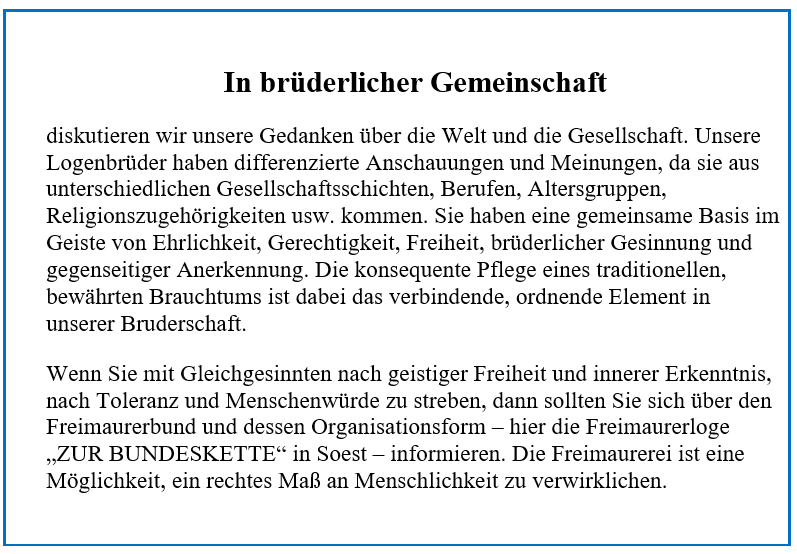 (Freimaurerloge in Soest, die in englischer Sprache arbeitet)
